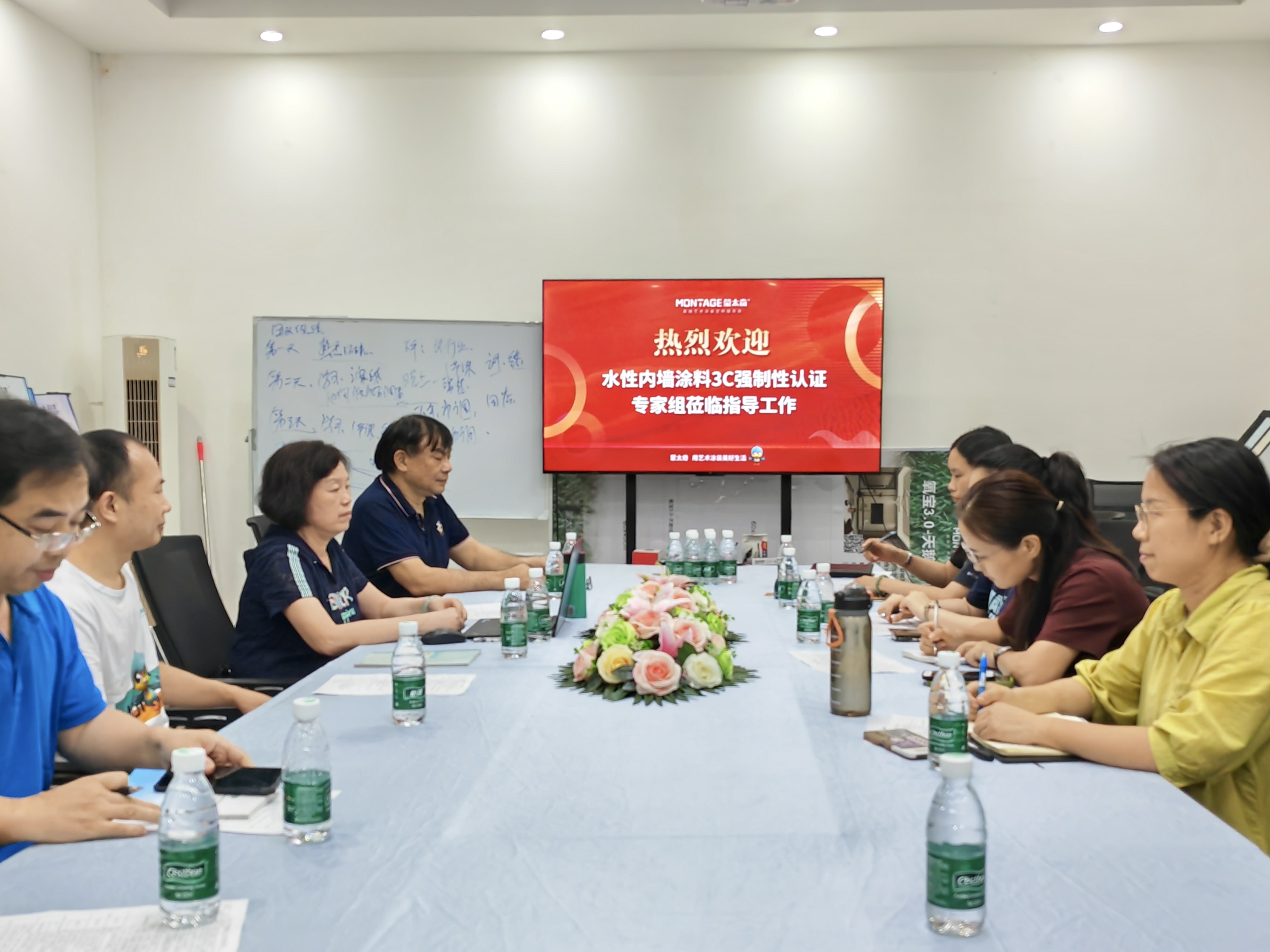 蒙太奇一直致力于為消費者提供安全、環(huán)保、健康的涂料產(chǎn)品,早已在這一趨勢中洞察先機,成為首批投身于水性內(nèi)墻涂料CCC認證申請的先鋒。5月28日,水性內(nèi)墻涂料3C認證專家組蒞臨蒙太奇順德工廠,與蒙太奇各個相關(guān)部門負責人就3C認證的標準與流程進行了第一次全方位的溝通與指導。